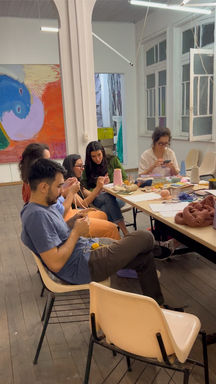 O grupo nasceu em 2023 como uma iniciativa minha (Luísa) de dar aulas de tricô e crochê. Durante esse período, o grupo se encontrava semanalmente no meu antigo ateliê na Casa de Estudos PF, com foco na construção e desenvolvimento de trabalhos têxteis nessas duas técnicas. Já em 2024, o grupo mudou de forma e se tornou mais horizontal, adquirindo o caráter de coletivo. Hoje os integrantes do grupo são, em sua maioria, outros artistas da cidade que já trabalham com têxtil em suas produções, ou estão experimentando novas possibilidades, mas também pessoas de outras áreas que se interessam pelo assunto ou que têm o têxtil como hobbie.